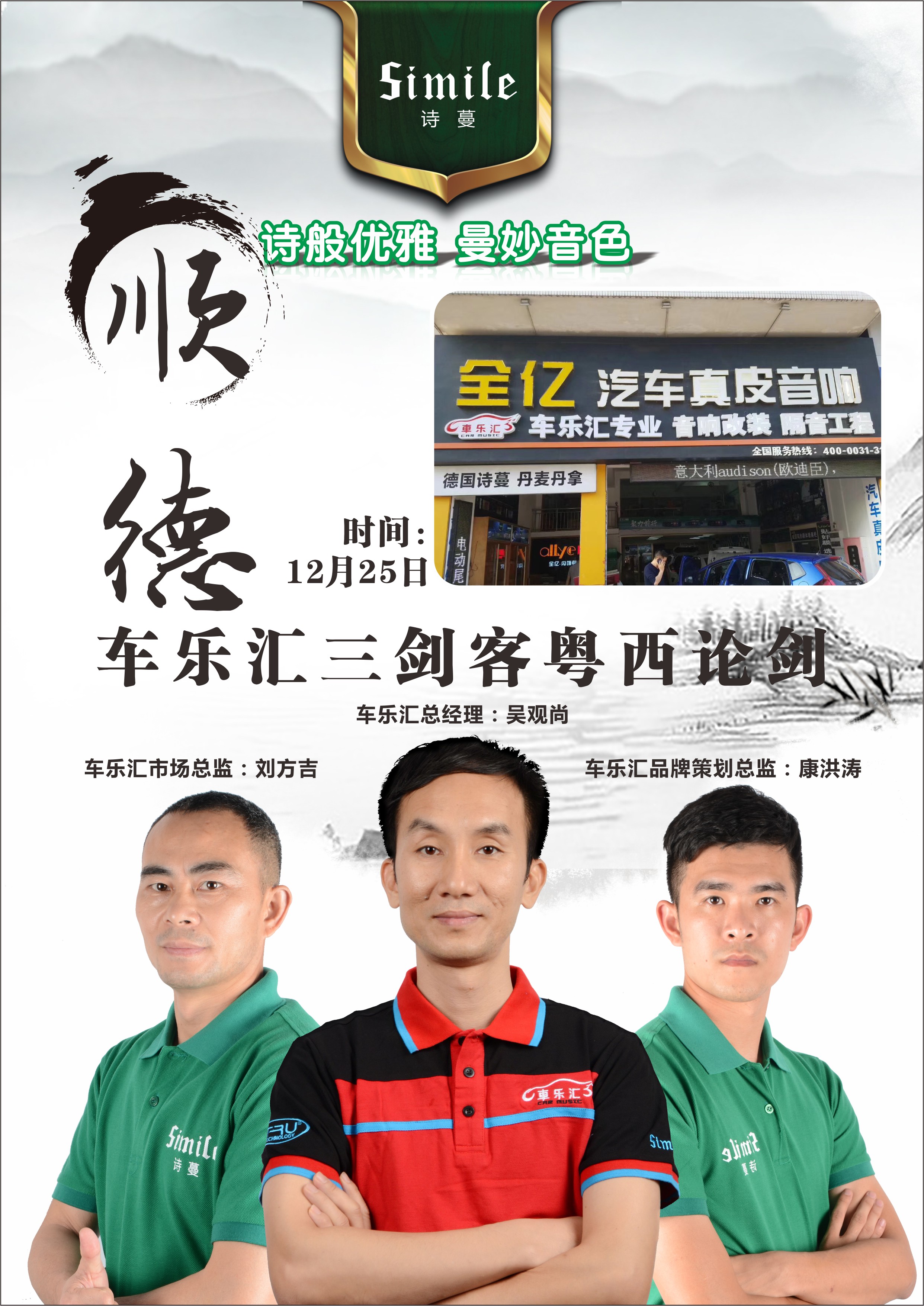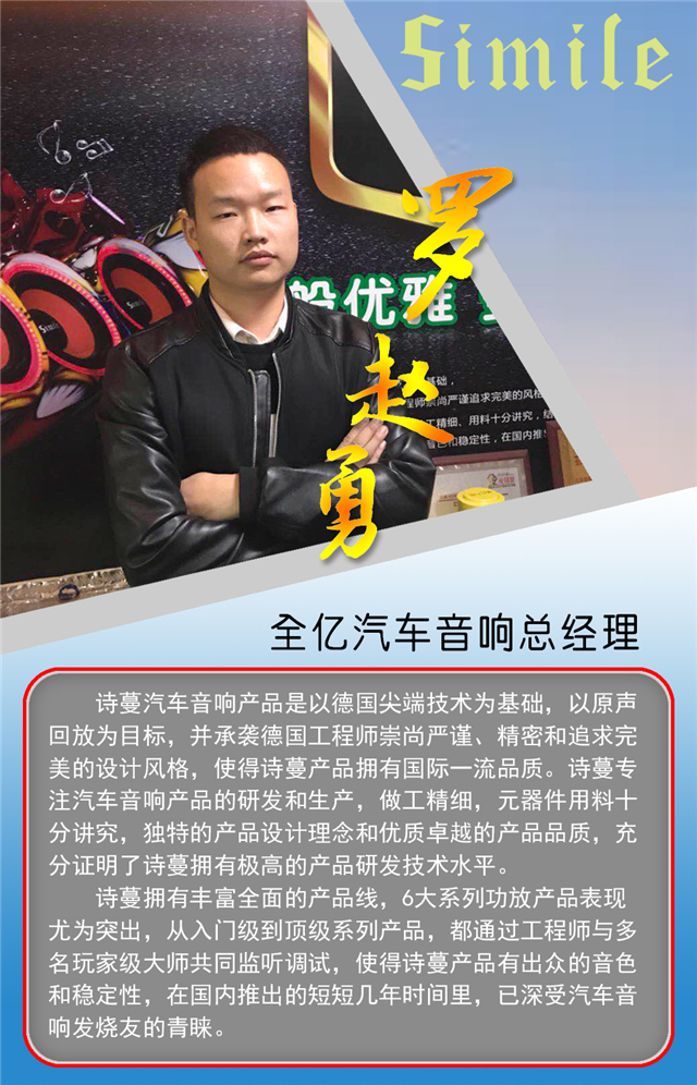 “聚天下名器,汇四海知音”一直是车乐汇的座右铭,给有追求的车友带来更好的享受,提供更高的音乐品质也是车乐汇的目标。 本月13日车乐汇三剑客结束了粤北地区的巡回调音活动,还剩下不到半个月的时间2018年即将到来,我们的三剑客也得走上今年的最后一次巡回调音活动了——粤西地区。 12月25日,车乐汇三剑客来到了粤西地区巡回调音活动的第九站——顺德全亿汽车音响。 全亿汽车真皮音响历经六年服务全国各地车友,现应广大车友要求,更好的服务车友,现与加盟全国十强音响改装店车乐汇技术联盟,特增加汽车音响改装项目,欢迎广大车友到店交流指导。 主营:美国TRU、德国诗蔓、美国蓝爵、绿静隔音等知名品牌音响。 全亿汽车音响总经理罗赵勇 时间紧迫,也是时候启程下一站了,感谢全亿汽车音响的兄弟们,下次再聚! 诗般优雅,曼妙音色。“聚天下名器,汇四海知音”,给有追求的车友带来更好的享受,提供更高的音乐品质也是车乐汇的目标,到这里粤西地区的巡回调音活动的全亿汽车音响已经结束了,接下来就是——顺德诚友汽车音响。