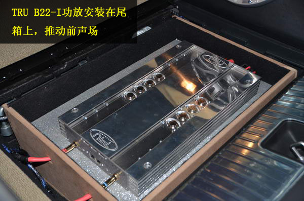 丹拿System_342的能力毋庸置疑,在汽车音响界铸造了数不胜数的经典,而且有歌乐HX-D3作为音源,音响效果就更加值得期待了。丹拿喇叭对功放的挑剔也是众所周知的,这个系统用TRU新款蓝金刚i版——B22-I功放推动前声场,是否能默契无隙地配合呢?